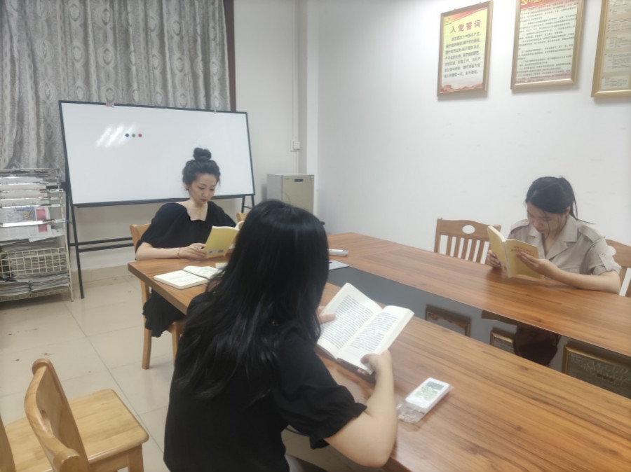 2021年6月21日下午,20级员工党支部在第二行政楼210召开党史学习教育专题学习交流会,学习习近平总书记《论中国共产党历史》部分章节内容并展开交流学习。支部书记张玮桐、支部党员段姣、孔德瑜参与此次会议。