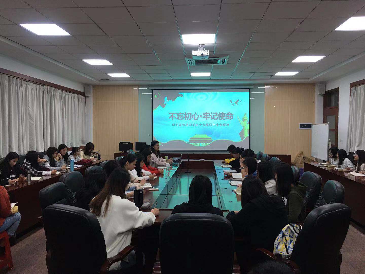 11月19日晚,伟德国际1946bv官网17级员工党支部组织全体党员在二政308会议室组织开展党的十九届四中全会专题学习研讨会。支部通过视频学习、交流研讨等形式,认真学习贯彻落实十九届四中全会精神,结合“不忘初心、牢记使命”主题教育,努力在深刻领会精神、深入贯彻落实上下功夫,以高度的政治责任感和历史使命感统一思想、凝心聚力,把思想和行动统一到全会精神上来,把智慧和力量聚焦到落实全会确定的各项任务上来。