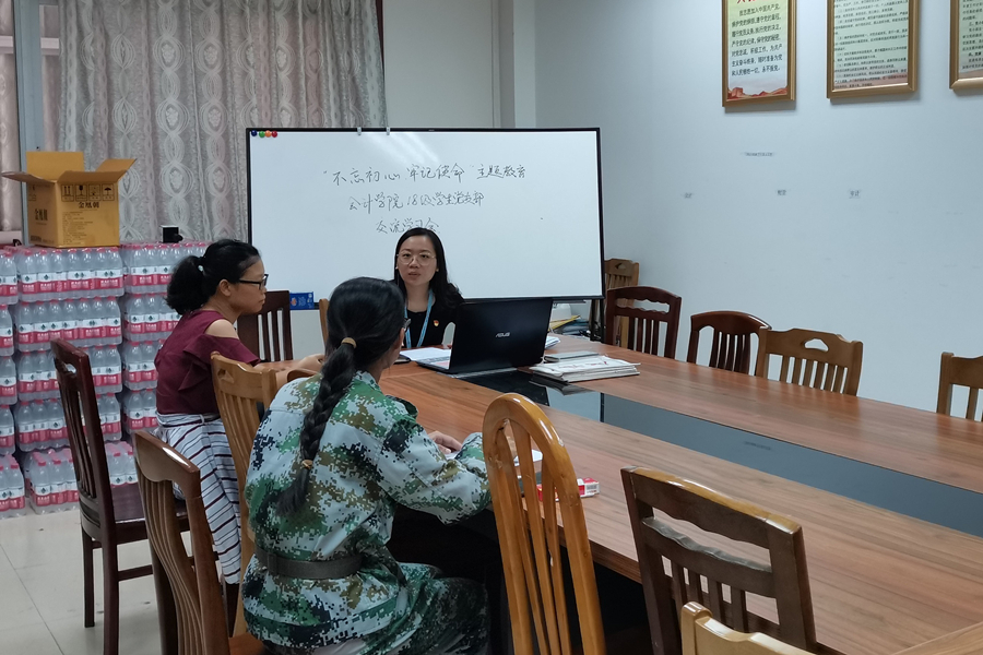 2019年9月26日中午,伟德国际1946bv官网18级员工党支部在二政214开展“不忘初心、牢记使命”主题教育交流学习会,会议由党支部书记谢子昀主持。