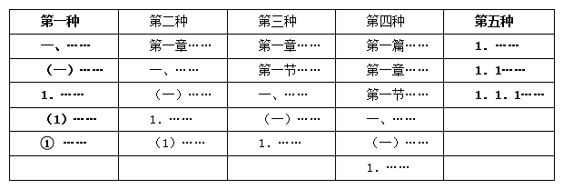 通行的标题层次大致有以下五种格式