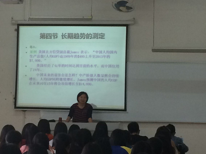 本次课程主要内容为长期趋势的测定。赵老师使用案例导入的方法,讲授了长期趋势测定的概念、影响因素,主要讲授了长期趋势测定的方法,对长期趋势测定的时距扩大法、移动平均法和最小平方法进行一一讲授,重点讲授了最小平方法。