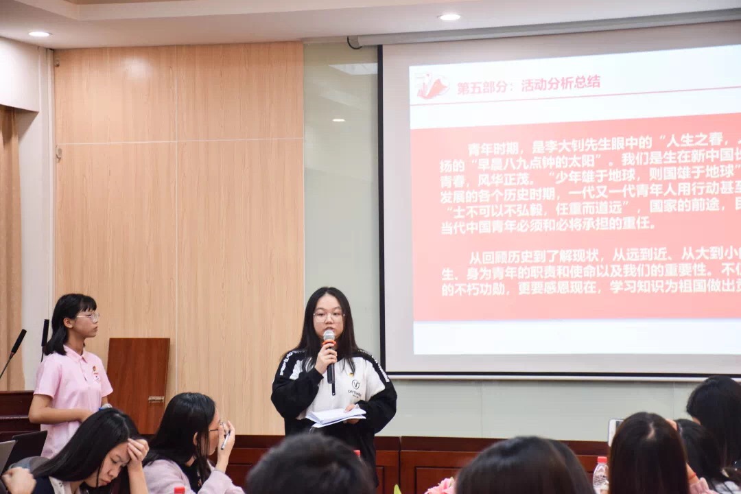 最后,由团委书记廖秀娟老师进行点评。她认为本次主题团日设计大赛形式多样,内容丰富多彩,认识到了青年是这个新时代蓬勃发展的关键力量,感受到自己的责任与担当。同时她也指出本次活动中各参赛团支部汇报过程中的不足之处,希望大家能够从深层次多方面解读主题团日,打造活力团支部。