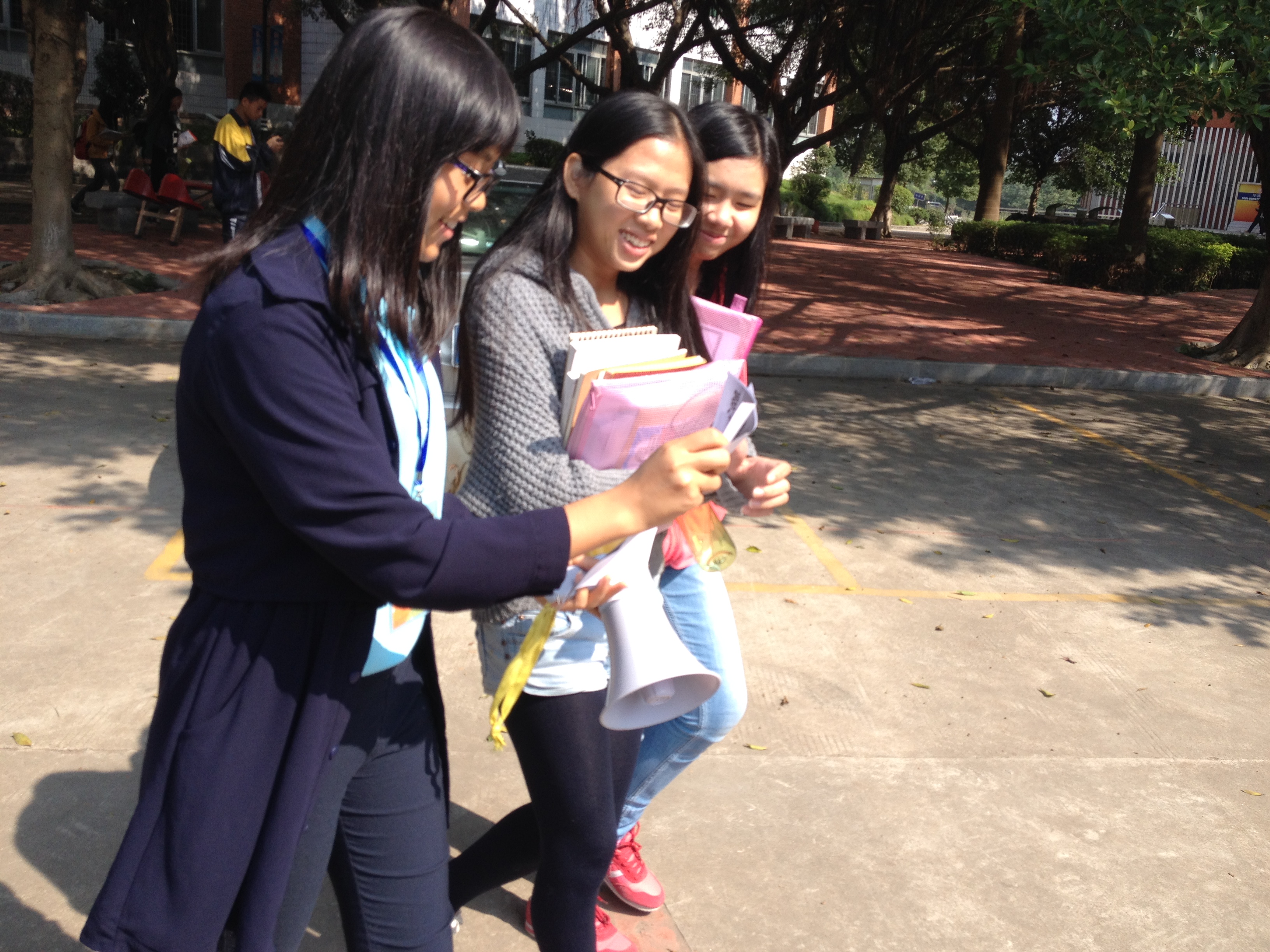 摆摊伊始,干部干事们满怀着热情,来到面包屋前帮忙搬桌椅、搭帐篷、摆展板,进行摊位布置以做好宣传的准备。当下课铃打响,教学楼的同学们蜂拥而至,校道瞬间人来人往,干事们积极、热情地向同学们宣传决赛的时间和地点并欢迎同学们前来咨询。校道上、饭堂门口和教学楼,干事们积极工作的身影处处可寻,与此同时,同学们也表现得很热情,积极前来摊位咨询与围观。顿时,摊位上布满笑声,热闹非凡。