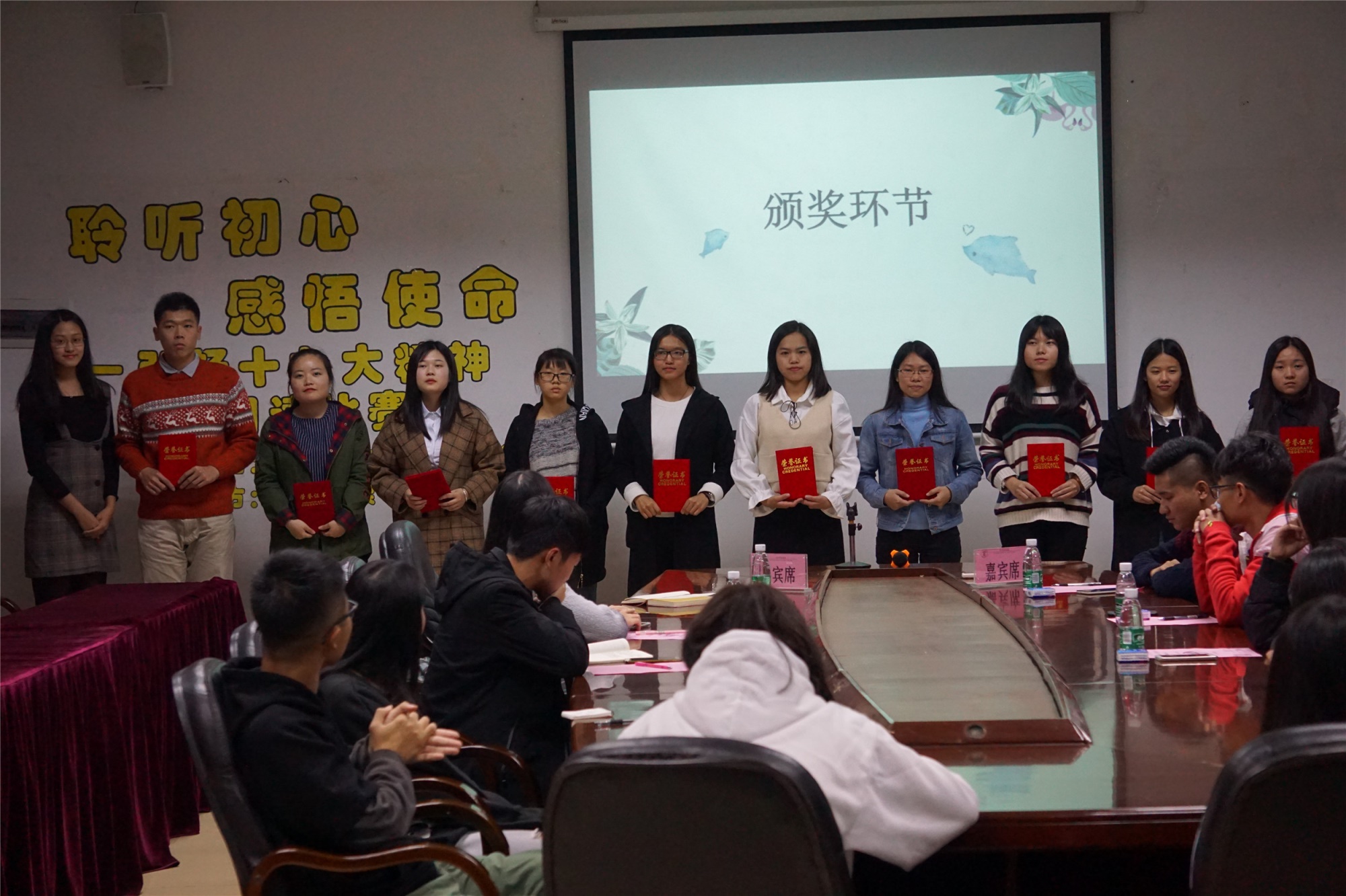 为弘扬十九大精神,让青年员工铭记初心,继续前行,伟德国际1946bv官网团委、员工会联合“会悦读”书社,于12月28日晚7:30分在第二行政楼108举办的“聆听初心,感悟使命”朗读者活动。伟德国际1946bv官网团委副书记谢莹莹、团委秘书长陈嘉欣、组织部部长李凯诗、员工会主席姚嘉楠、副主席麦程南、副主席蓝喜、员工会秘书长陈淑敏以及17级各班级的员工代表出席活动。