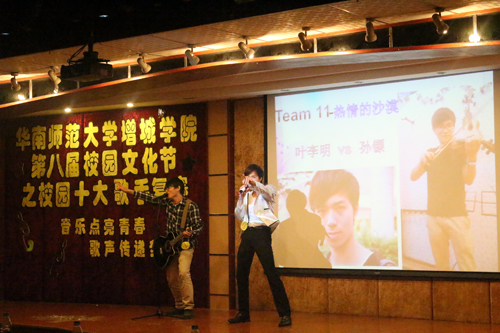 音乐能张扬火热的青春,歌声能载着梦想起航。为了给老员工搭建释放自己的舞台,再续初赛的精彩,2013年11月22日晚上7点整,由会计系团委员工会承办的校园十大歌手比赛的复赛在歌舞厅如期举行。会计系党总支书记李锦堂、旅游管理系团委书记冯勤辉、会计系员工会指导老师汤振华、会计系13级辅导员李银霞老师等嘉宾出席了本次活动。