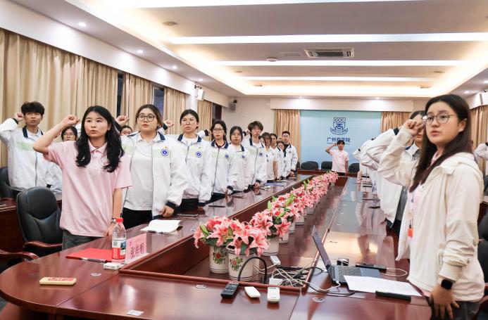 团委书记张桂明带领新团员面向团旗庄严宣誓,激励新团员牢记团员的初心和使命,坚定不移跟党走,以实际行动投身共产主义事业。