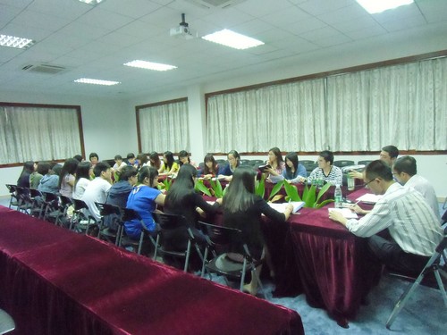 为提高会计系教学质量,促进学风、教风建设。全面了解员工对各科老师的评价和建议,深入了解员工的学习情况,帮助员工解决所遇到的问题。华南师范大学增城公司会计系10级于2012年04月23日19:15,在D308举行期中教学座谈会。莅临本次座谈会的嘉宾分别有会计系副主任凌辉贤老师、会计系党总支王龙华书记、10级辅导员陈秀纯老师与会计系10级各班的员工代表。