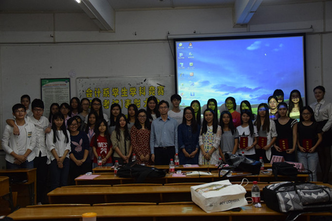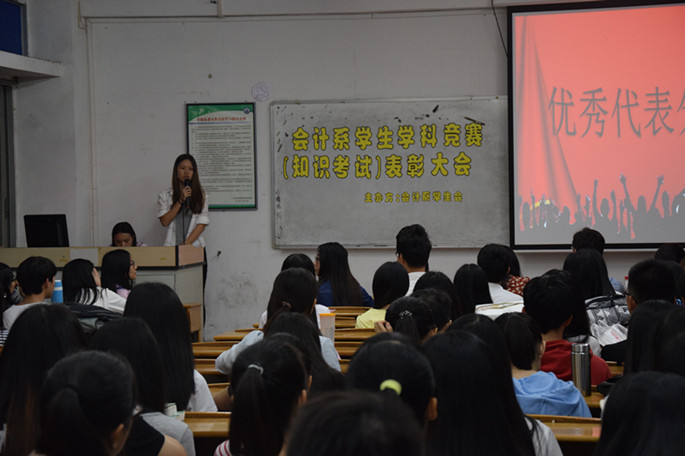 为激励员工积极参加学科竞赛(知识考试),更好地调动员工学习的积极性,提高员工的综合素质和学术水平,营造浓郁的校园文化氛围,会计系决定对2015年获得学科竞赛(知识考试)奖励的员工进行表彰。11月23日晚,会计系在B204举办了表彰大会。会计系党总支书记李锦堂,会计系员工会指导老师吴梦,辅导员陈秀纯、蓝乐钿,各年级员工代表和获奖员工参加了表彰会。