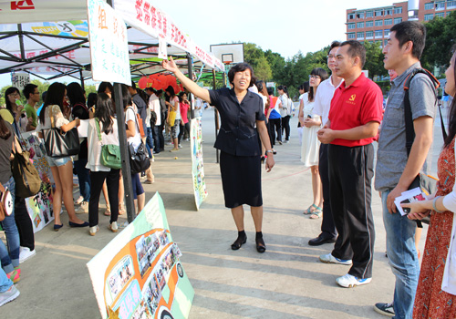 干部们热情向新生们介绍部门特色
