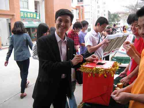 在活动接近尾声的时候,系的书记和三位老师前来活动现场,对活动进行指导和提出宝贵意见,同时也投上宝贵的一票,让我们的活动现场增加了更多的活动气氛。