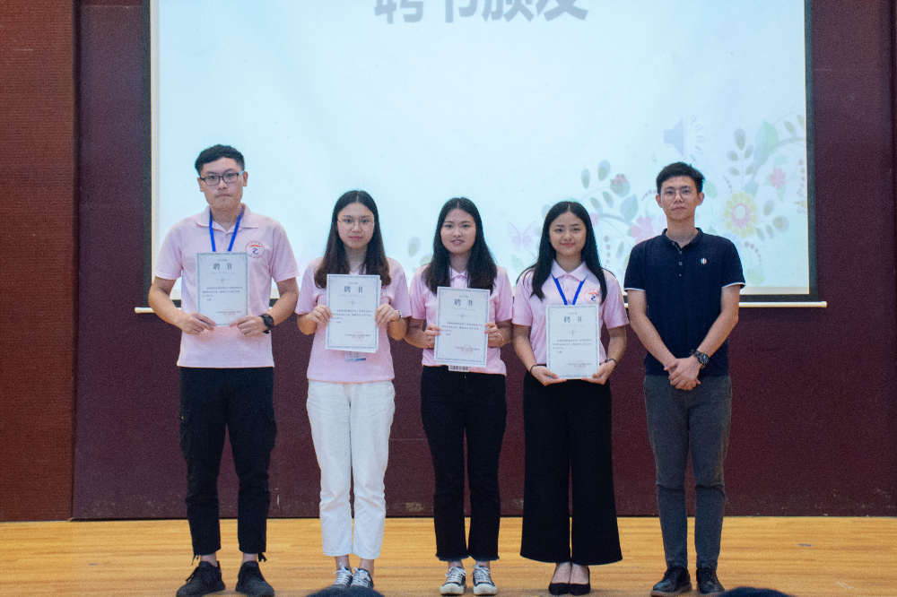 总结完毕后,由张振华宣读2018-2019学年度员工会工作中表现突出、工作积极的优秀部门及优秀个人。经员工会日常考核决定授予宣传部、自律委员会、网络部、生活部优秀部门称号,对陈傲宇等21名干部进行表彰,由廖秀娟为他们颁奖。最后步入本次会议的最后一个环节,颁发聘书。聘书,是员工干部在员工会一年来中辛勤工作的证明,也是对其能力的肯定,由张振华老师为每位部长及干部颁发聘书、合影留念。