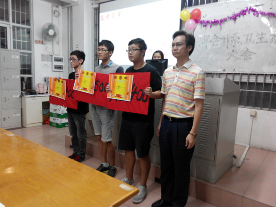 首先,老师和员工干部们共同欣赏了一部日常工作视频,紧接着陈秀纯老师宣读获奖名单,获得卫生清洁第一名的班级为财管三班,获得第二名的班级分别是会计二班和会计四班,获得第三名的班级分别是财管二班、审计一班和审计三班,获得优秀奖的班级分别是会计一班、会计三班、财管一班和审计二班。获得优秀生委的个人分别为13级审计三班黄伟兵、13级审计三班叶海茵、13级财管二班王梓楠和13级财管三班潘媛媛,获得优秀组委的个人分别为13级财管一班刘倩致和13级会计一班李子璇。接下来由李锦堂书记、陈秀纯老师、罗彩玲老师等领导与员工干部分别对获奖班级、优秀生委、组委进行颁奖,并对优秀生委、组委以及卫生清洁工作完成出色的班级做出表扬,鼓励他们能再接再厉,为14级做好榜样。