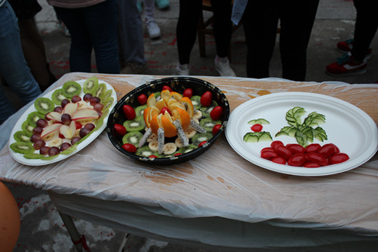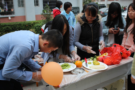 为了丰富校园文化生活,更好的培养同学们的创新意识和实践能力,会计系员工会女生部于11月18日16:00在舞蹈室前的空地举行水果拼盘创意大赛。莅临本次活动的嘉宾有员工会指导老师陈秀纯、14级辅导员吴梦、14级辅导员罗彩玲、公司员工会女生部部长方雪莉以及会计系员工会主席甘远锌。