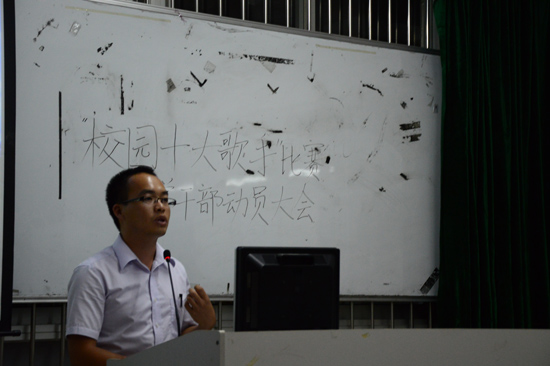 会上,团委书记蓝乐钿在对竞标到此次活动表达了兴奋与喜悦之余,也提出了几点要求:一是希望团学干部们能分工不分家,出色地举办本次活动;二是希望全体干部们能懂得换位思考,发现问题,解决问题并及时反馈。紧接着,员工会指导老师汤振华也对在此次竞标过程中付出辛勤努力的全体干部们表示衷心感谢,并提出几点建议:一是希望全体干部能充分利用此次机会锻炼自己;二是希望干部们能明确目标和分工,充分做好活动的前期准备工作;三是希望各个部门能明确任务并高效完成。随后员工会主席龙荣俊与团委副书记古舒恺也先后上台讲话,他们对“校园十大歌手”大赛寄予了深深的祝福,同时也希望团学干部们能够同心协力,延续会计系优良传统,让本次大赛在成功举办之余带有会计系的烙印。最后员工会文娱部部长甘远锌对本次大赛的活动流程及工作安排做了一个大体的介绍。