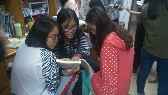 宿舍中认真探讨问题
