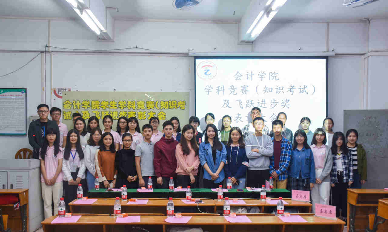 首先,大会对获得初级会计职称前三名以及英语四六级前三名的优秀同学做出表彰。他们分别是初级第一名:16级财务管理4班庄建彬,第二名:16级财务管理2班吴焕楷,第三名:16级会计学3班刘诗明;英语四级考试第一名:17级审计2班蔡淑仪,第二名:17级审计二班邓晓岚;第三名:16级会计4班吴丹敏:英语六级考试第一名:16级财务管理4班曾莉,第二名:16级会计1班陈绮华,第三名:16级审计2班罗维。