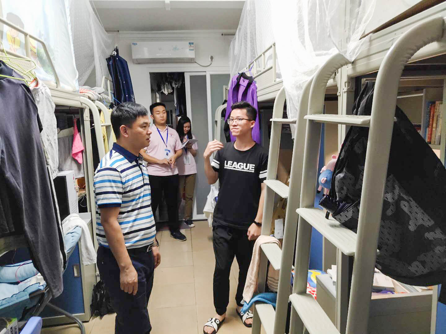 为深入贯彻公司平安广商建设的精神,落实公司员工公寓管理会议的精神, 2019年5月10日傍晚七点,公司党总支书记钟远辉带领政工干部、部分员工干部对本院员工宿舍进行了全面的安全、卫生检查。