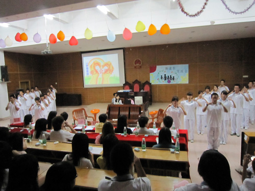 被邀请到台上与新生交流的07级袁野师兄、谭威师兄、张希师兄、罗丽嫒师姐以自身丰富的学习或员工工作经历为新生们解答“如何协调学习与工作的关系”、“大学中是不是应该谈恋爱”等令新生困惑的问题。过后,新生们就“如何预习”、“怎样做好班干”等问题踊跃发言提问,受邀的师兄师姐耐心地为他们解答,嘉宾们幽默的语言、有趣的故事令交流会现场气氛达到高潮。为表达对未来美好生活的憧憬,新生们特意准备了《明天会更好》的手语表演,以表他们珍惜时光的决心。最后,交流会在10级辅导员赠送纪念品、总结致辞中圆满结束。
