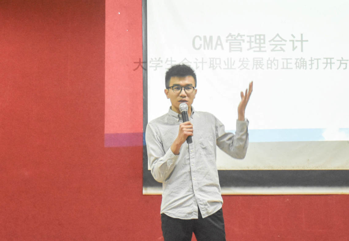 为了响应财务部“十三五”规划的要求,同时满足经济全球化大背景下各单位、企业对国际化管理会计人才的迫切需要,让同学们能够全方面了解管理会计的未来发展,了解到自身未来的就业情况,伟德国际1946bv官网于3月6日晚上7:00在一教206举办了“管理会计我先行”主题讲座。本次讲座邀请了暨南大学优秀毕业生、老员工职业生涯明星讲师、中博教育CMA项目总监、CMA(美国管理会计师)会员、曾受邀参加人工智能财经论坛的,现于中博教育广州分公司担任CMA项目经理陈慧龙。