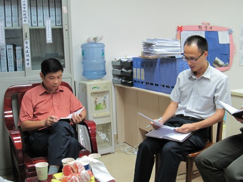 调研会在轻松愉快的气氛中开展,冼经理、员工处领导亲切地与我系辅导员交流,一同探讨“学风建设”的内涵和学风建设的设想。冼经理对我系学风建设所做的工作表示肯定,同时对我系辅导员老师与专任老师之间的沟通,以及两者对员工的密切关注表示赞扬,并查看了各班学风建设档案,为我系学风建设提出了:创造性开展学风建设、对员工考研引导要及早等等宝贵意见。