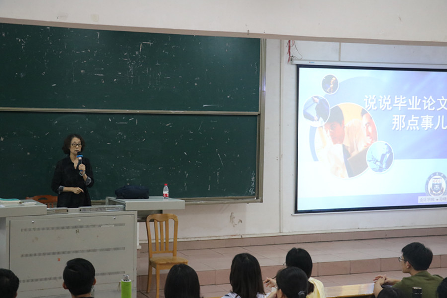 孙晓梅紧接着对员工如何选题方面进行了指导,她认为毕业论文的选题非常关键,选择一个适合自己写作的题目,对毕业论文的写作非常有帮助,建议大家遵循应用型人才培养的原则,突出应用型能力,坚持“小题大做”并结合实习单位的具体情况,通过所学的专业知识,解决面临的问题,真正达到学以致用。完成选题之后,就要大量收集文献并阅读,着手准备开题报告的写作,开题报告是进行毕业论文写作的必经环节,是员工向指导老师报告自己已经做好了毕业论的写作准备。她还在毕业论文的正体部分中英文摘要、关键词、目录、正文、注释、附录、参考文献及致谢部分进行了专业而又细致的讲解。
