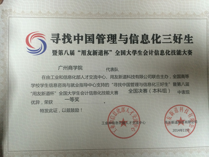 近日,第八届“用友新道杯”全国老员工会计信息化技能大赛公布了赛事结果,我系教师范时云指导,员工许丽、蔡庭圭、颜建菲、郑燕组成的团队荣获全国决赛(本科组)一等奖。
