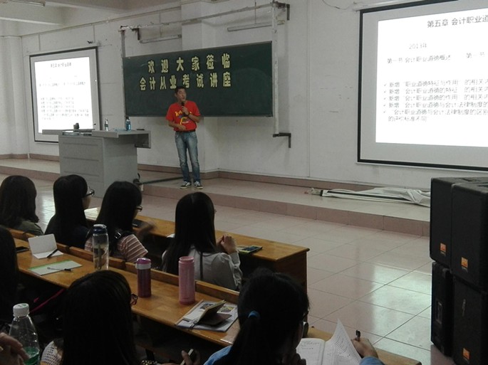 成慕杰介绍了会计从业资格证是会计工作人员必须具备的证书,考试难度较大,通过率不高;鼓励同学们要有信心,认真复习,争取一次性通过!本次讲座帮助同学们树立了信心,为同学们的备考指明了方向,相信同学们会顺利通过本次考试。