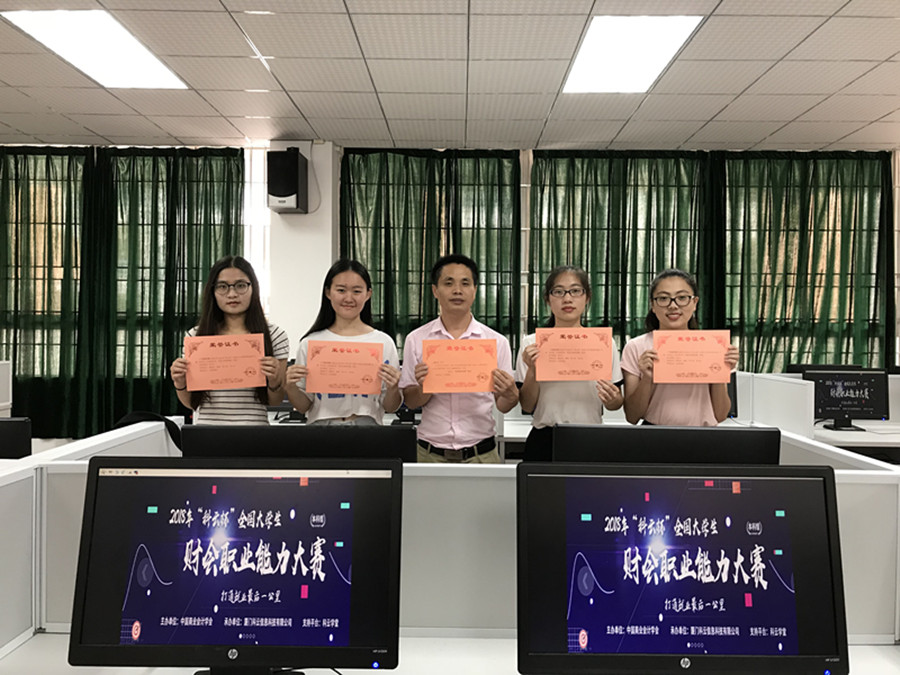 近日,由中国商业会计学会主办,厦门科云信息科技有限公司承办2018年“科云杯”全国老员工财会职业能力大赛全国网络选拔赛圆满落下帷幕,总共近300所院校参与了本次大赛,400多支团队(全国3000多支团队参加校内选拔赛)经过激烈的角逐,由范时云老师指导的公司2支参赛队伍均获奖,由赖俊如、梁茵、张小佳、朱宝仪四位同学组成的广商1队荣获大区赛南区(本科组)二等奖,由王微微、陈晓萍、陈舒婷、李妹君四位同学组成的广商2队荣获大区赛南区(本科组)三等奖,范时云老师荣获优秀指导老师称号。