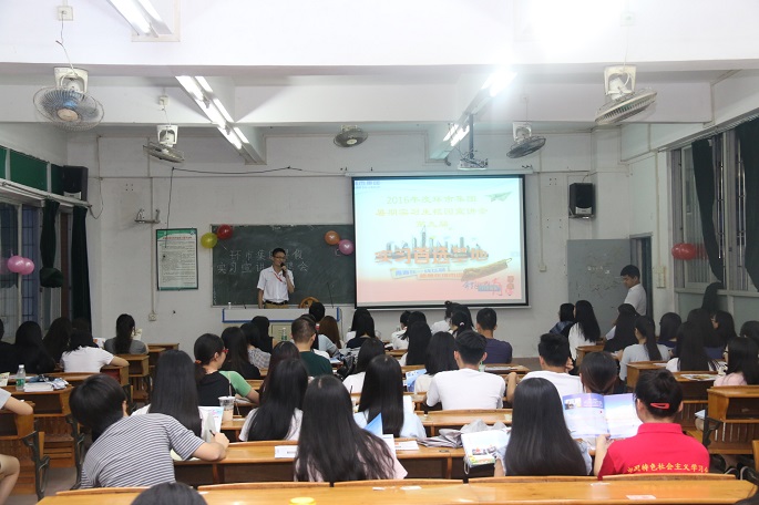 6月14日晚,伟德国际1946bv官网在教学楼B104举行“奔跑吧,老员工”广州环市投资集团有限公司第九届老员工暑假实习活动的宣讲会。环市集团专门派了5名专员为公司员工进行暑假实习活动介绍,会计协会指导老师陈秀纯以及一百多名员工参加了本次宣讲会。