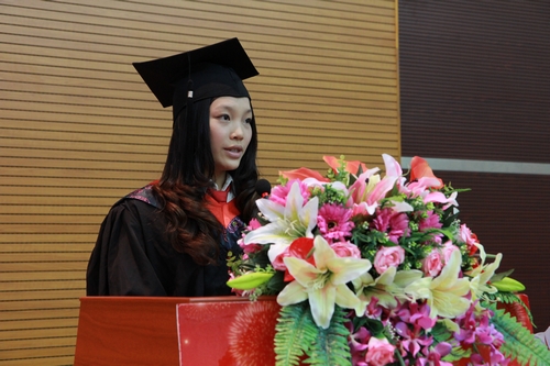 大会开始前,一段记录会计系2012届毕业生大学四年生活的视频在报告厅屏幕上放映,一个个生动感人的画面让毕业生重温了大学四年的欢笑与泪水。之后伴随着嘹亮的国歌,毕业典礼暨学位授予仪式正式开始。杨文轩经理向毕业生们致以热烈的祝贺和最衷心的祝福。 他对即将迈出校门,踏上新的人生旅程的毕业生提出了几点期望:“第一,希望同学们用心工作、用心学习、用心生活,在社会的舞台上大显身手;第二,希望大家能够做一名担当责任的人,对家人、公司和社会负责;第三,希望同学们走出校门之后,继续关心母校的建设和发展,为母校更加美好的明天献计献策”。杨院的讲话幽默风趣,字里行间透露出更多的是真诚与祝福,在场的每一位师生无不为之动容。