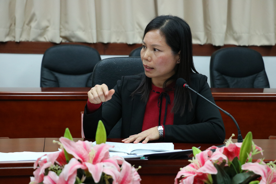 副经理刘瑞华向大家传达了评估工作的进展情况,充分肯定了前期工作的工作成果,同时也指出不足之处。她还对期末考试工作、评阅卷及毕业班实习、论文等工作进行了详细的部署。她强调,第一,期末考试工作的各个环节需严格按照标准来执行,要求老师做好认真阅卷,交叉检查;第二,论文指导与实习指导中,指导老师需详细了解外出实习员工动态,每两周进行一次实习指导,并指导员工结合实际工作情况撰写论文,确保实习安全进行,论文高质量完成。