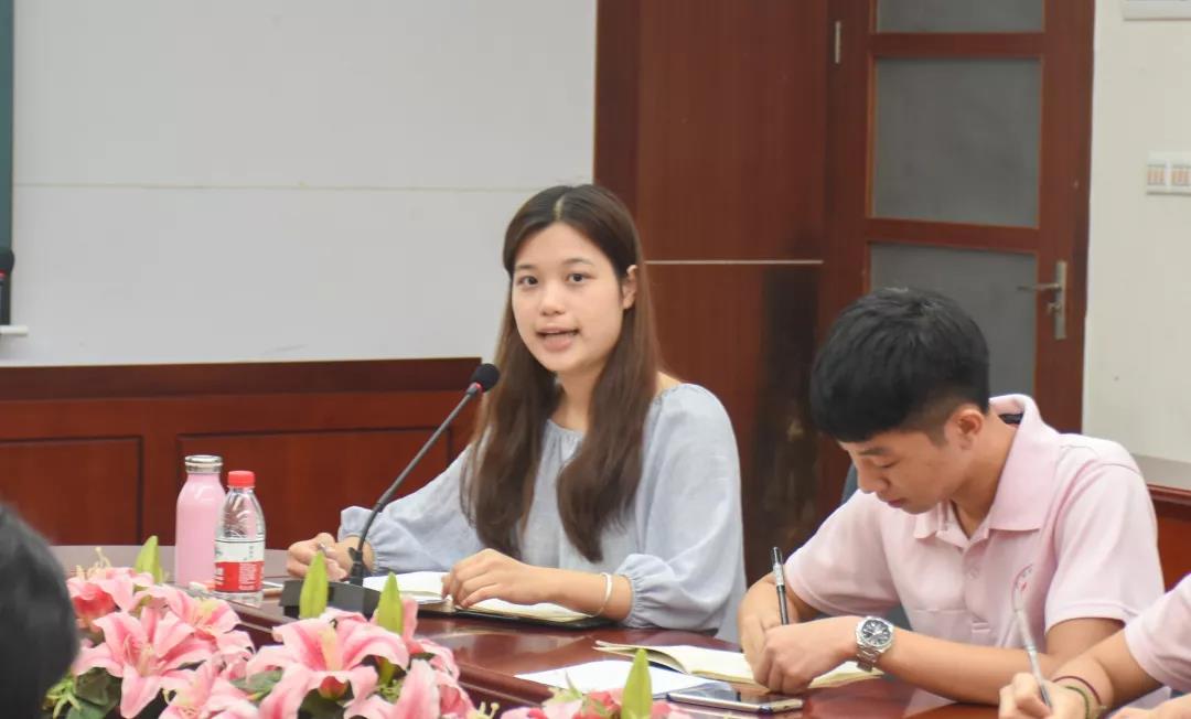 廖秀娟对开学近一个月来,全体干部在各个方面所做的工作表示了肯定。她指出,大家在工作当中能做到有计划、有组织、有纪律,各部门能够协调一致,相互配合,突发事件处理及时,受到老师以及同学们的一致好评,希望大家继续秉承“热情、积极、奉献、服务”的良好作风,改进不足,在今后的工作做到尽善尽美。她对本学期即将开展的主要工作进行了部署,明确了十月份招新工作的要点和注意事项,要求大家在工作过程中要形成合力,分工不分家。她提醒大家开展工作时要做到事前请示、事中汇报、事后总结,要增强责任意识,强化服务意识,认真履行自身职能,不断加强自身建设,树立典型,传播正能量。