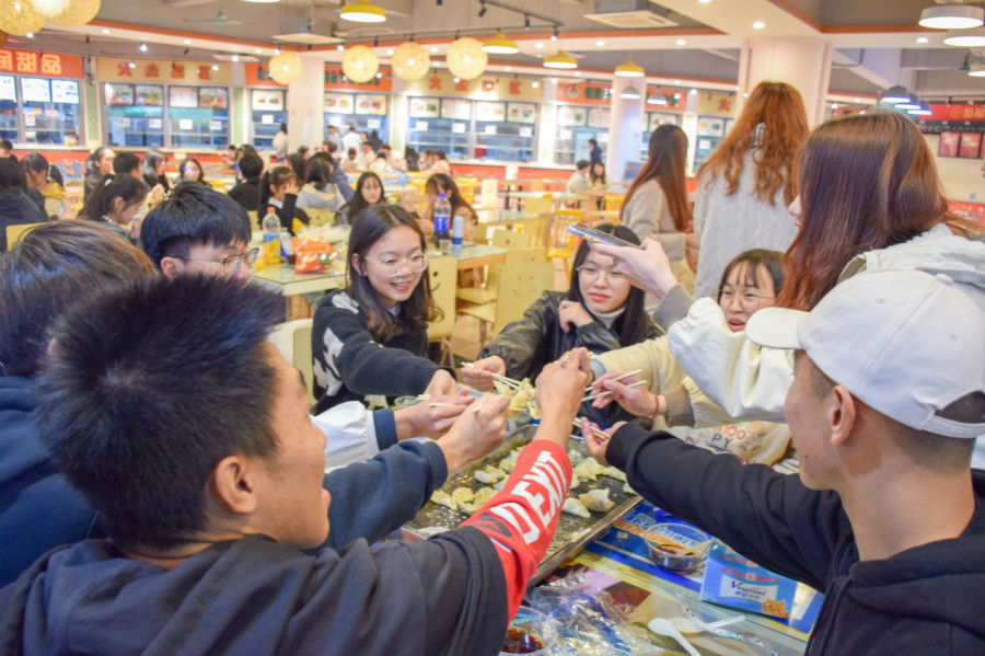 经过大家的不懈努力,热气腾腾的饺子被端上了餐桌,同学们互相品尝,体会到了传统节日的温馨,呈现出了温暖与欢快的氛围。大家欢聚一堂,其乐融融,碗中的汤圆黑白交衬,芝麻的香甜气息沁入你我心窝,举杯同祝,共同道出冬至的温暖祝福。