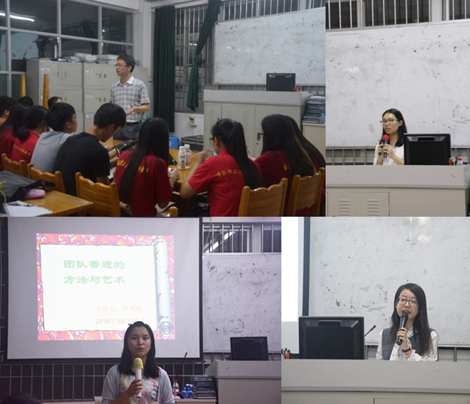 陈秀纯以一个团队合作小游戏的开展引出本次培训会主题:团队管理的方法与艺术。从团队的定义,团队的构成要素,团队的管理方法及团队的成长四方面进行阐述。对团队进行解释并以西游记中师徒四人为例,强调领导人与核心成员应当具备的方面。从思想,学会约束自己,建立完整的激励机制,要借力使力不吃力四大核心讲述管理团队方法。阐述团队成长分成长期,不满期及认同期。