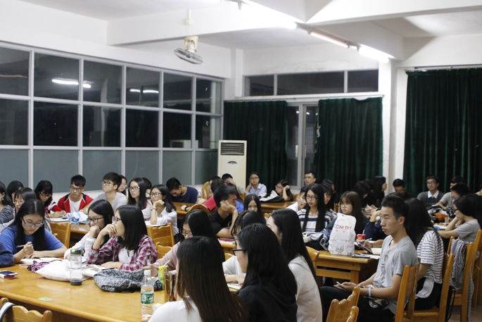 蓝乐钿从校园活动的特点、策划的四部曲、实施和总结四方面为干部们讲解校园活动的具体策划。指出校园活动三特点。从立项、审批、执行和实施、总结四方面讲述活动策划的流程并举往年迎新晚会的例子加以说明。强调要成立活动筹备组;制作工作额进度表以及编印 《工作手册》 ;并提出应急事项。在活动结束后应进行活动总结,在下次活动中汲取经验争取越办越好。
