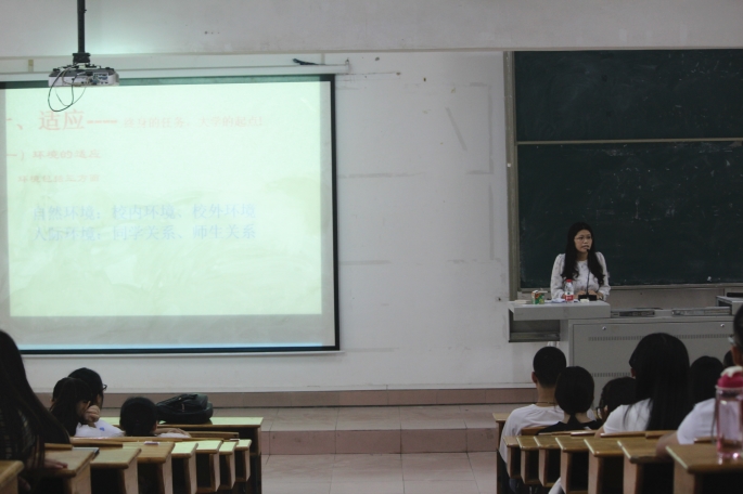 辅导员韩彩霞先是从不同角度和同学们谈了对大学的认识,着重强调了职业规划的重要性,紧接着从环境适应、学习适应、心理适应、全面发展、培养老员工核心能力等方面展开论述。讲座期间,韩彩霞老师用轻松幽默的话语营造了一个愉悦的氛围,她根据自己求学的真实经历,要求同学们珍惜时光,抓住机遇,尽快转变角色,提早做好规划,充分利用好大学舞台,发展自己各项潜能,努力成为21世纪创新型、应用型人才!