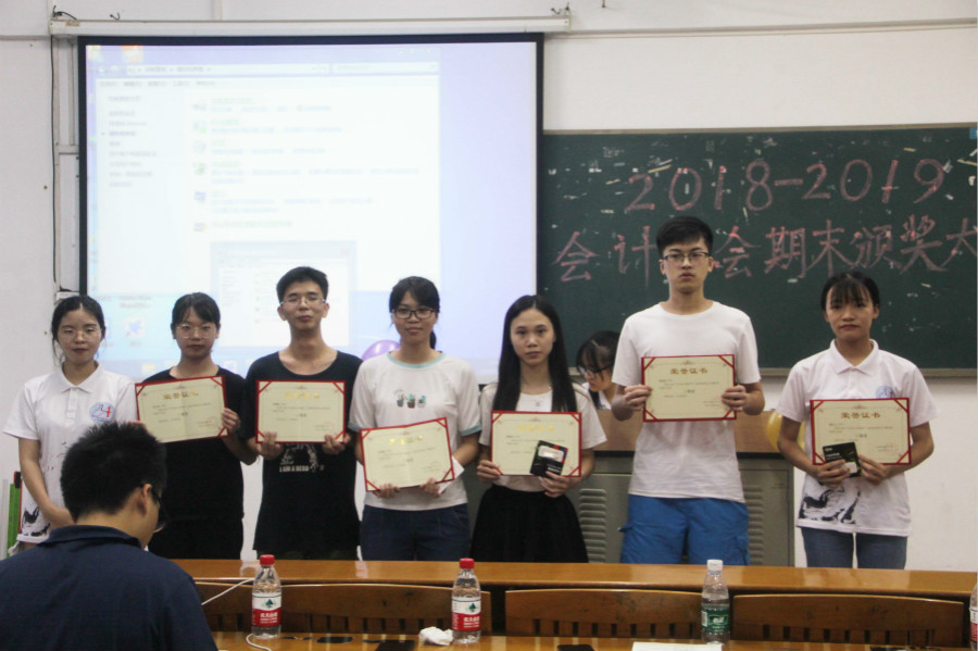 为表彰在2018-2019学年下学期以来在初级会计模拟大赛、中华会计网校杯等专业竞赛中表现突出的同学,树立榜样,和总结过去、展望未来。会计协会于2019年6月5日18:30至21:30在五教205举行学期学科竞赛颁奖暨总结大会,会计协会指导老师汤振华、获奖者以及协会全体干部出席了活动。