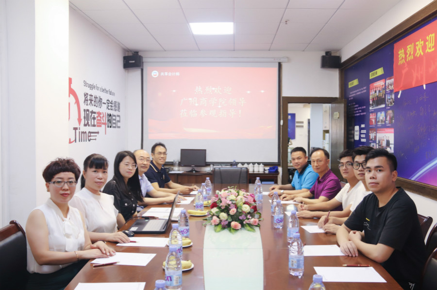 为加强校企合作,了解就业市场需求,拓宽毕业生就业渠道,2020年8月10日,公司经理余浩、党总支书记钟远辉前往广东嘉毕信财税有限公司考察调研,双方就校企合作、人才培养以及毕业生就业工作等事宜进行洽谈。