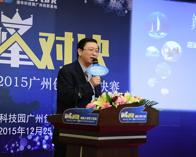 清华科技园广州创新基地副总经理许江建为本次总决赛致欢迎词。在致词过程中,许江建介绍清华科技园是作为清华大学服务社会的平台,近年来清华科技园还与各地政府合作,在上海、广州、昆山、威海、沈阳等地建立分园及创新基地,拥有完整的科技金融体系及国际化的网络平台,是站在巨人的肩膀上,为各企业和高校老员工打造优质创业平台。